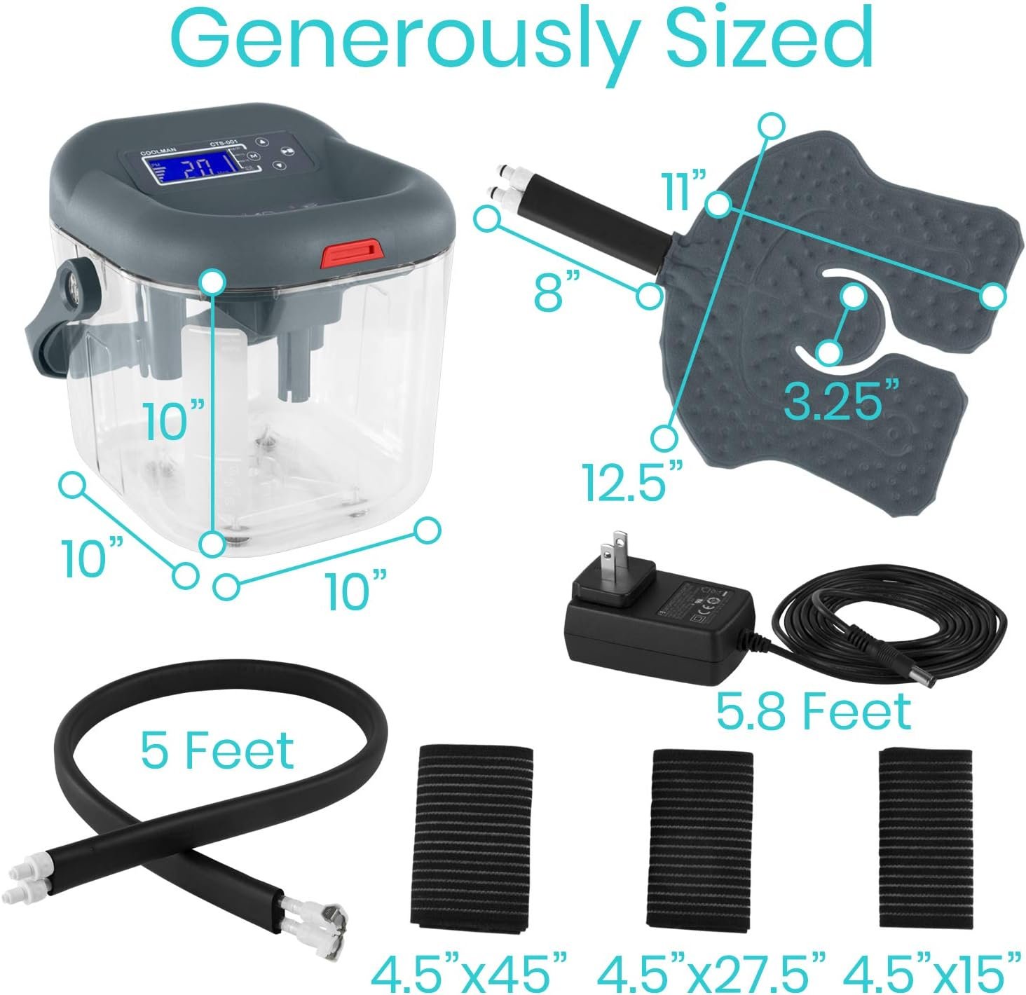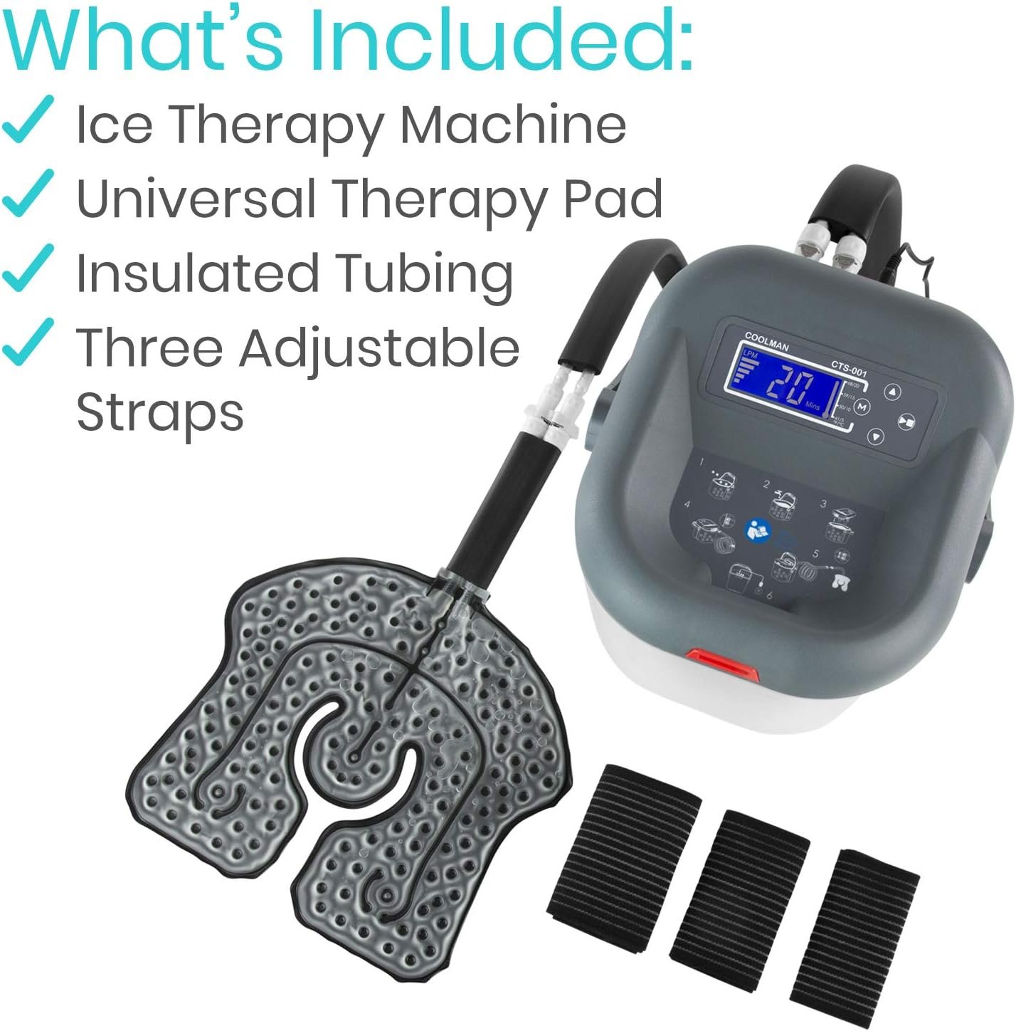 Designed for versatile use, the ice therapy system features a durable five-foot, foam-insulated connector tube that keeps water temperature stable throughout each treatment. With secure snap-and-clip connections, every setup remains leakproof and reliable, ensuring consistent performance in various setting